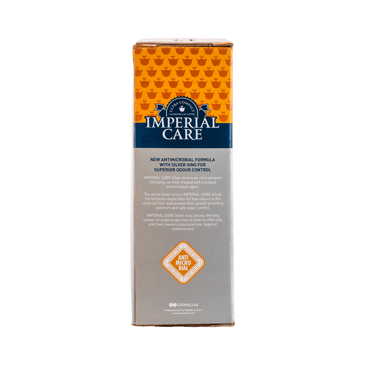 Nu. Imperial Care Silver Ions nu conține substanțe dezodorizante sau parfumuri. Controlul mirosurilor se realizează prin ionii de argint antimicrobieni, care inhibă dezvoltarea bacteriilor responsabile de apariția mirosurilor neplăcute, asigurând o litieră igienică și neutră olfactiv.